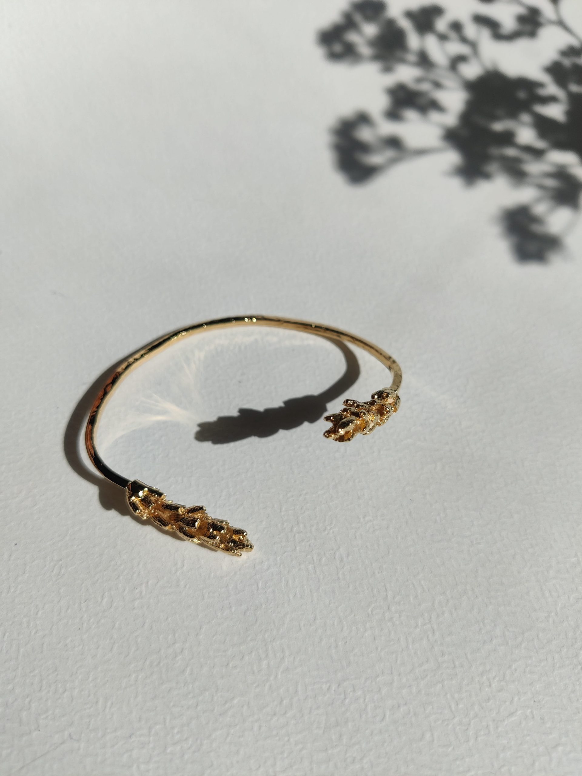 Le jonc lavande en laiton plaqué or 24k est un accessoire de mode unique en son genre qui habillera votre poignet avec élégance. Les détails délicats des fleurs de lavande sont sublimés dans ce bracelet artisanal fait main en France.